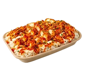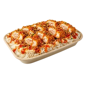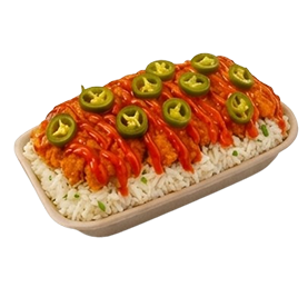 Riz blanc, sauce crousty, tenders red, sauce spicy, jalapenos, oignons crispy, persil