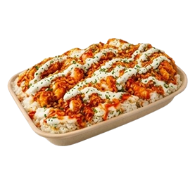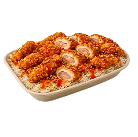 Riz blanc, sauce crousty, tenders red, sauce spicy, jalapenos, oignons crispy, persil